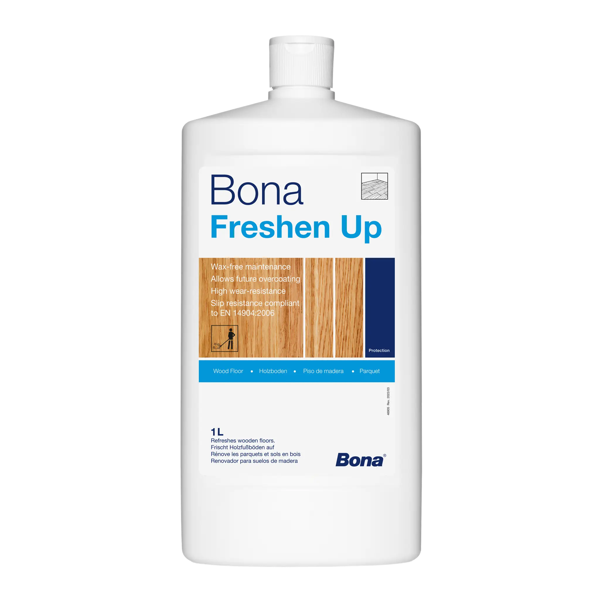 Bona Freshen Up is a ready-to-use water-based maintenance coating for most varnished wooden floors in both commercial and domestic environments. It helps to revive scratched or dull surfaces giving a newly finished look and extra protection against wear. Perfect for maintaining the range of Bona Floor Varnishes.