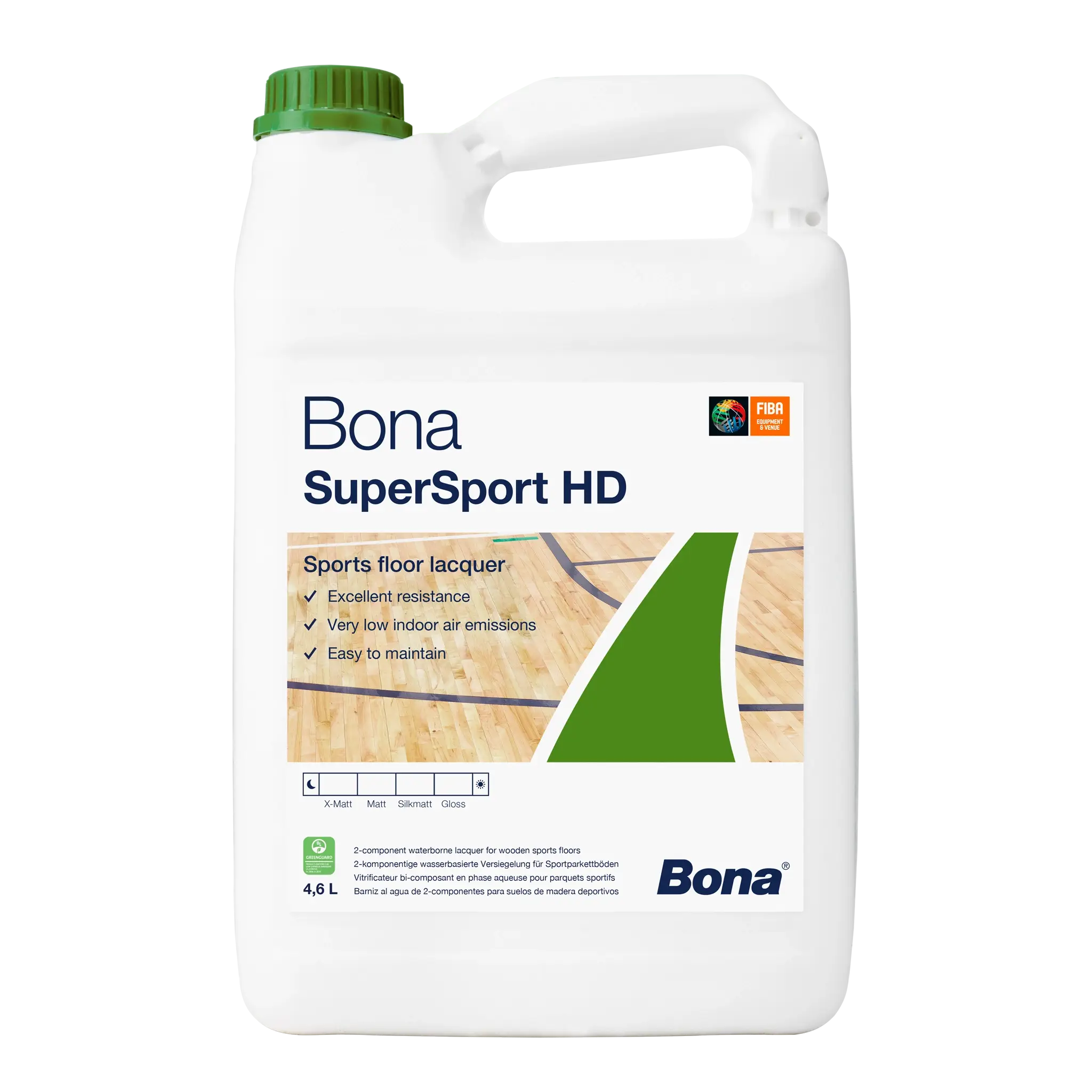Bona SuperSport HD is a two-component, water-borne, polyurethane finish for the surface treatment of wooden floors in sports halls, gyms, dance studios, multi purpose halls and other busy environments with wooden floors that require a high degree of protection.
