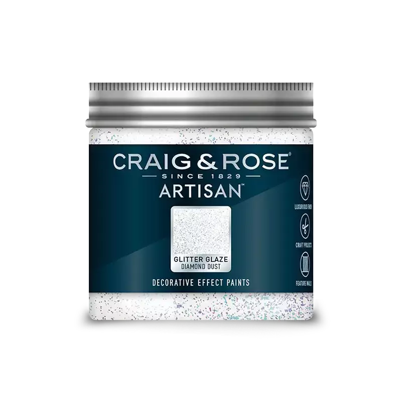 - Mask off the areas that you wish to remain uncovered by Craig and Rose Artisan Glitter Glaze to create interesting patterns and shapes on the walls