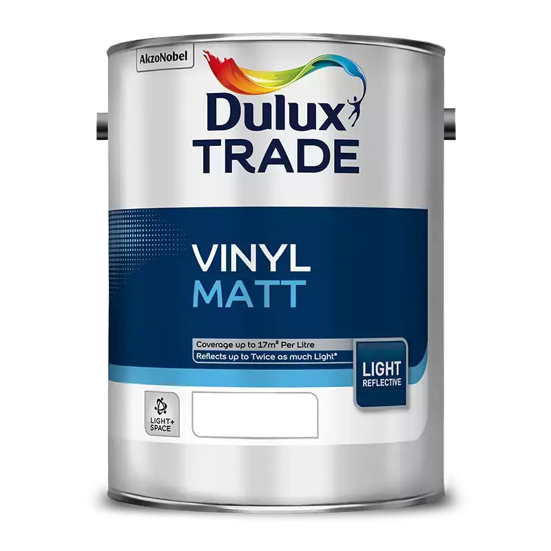 Dulux Trade Vinyl Matt Light and Space is a durable matt emulsion for interior walls and ceilings. With its light reflecting technology, it reflects twice as much light, making small rooms look and feel more spacious.