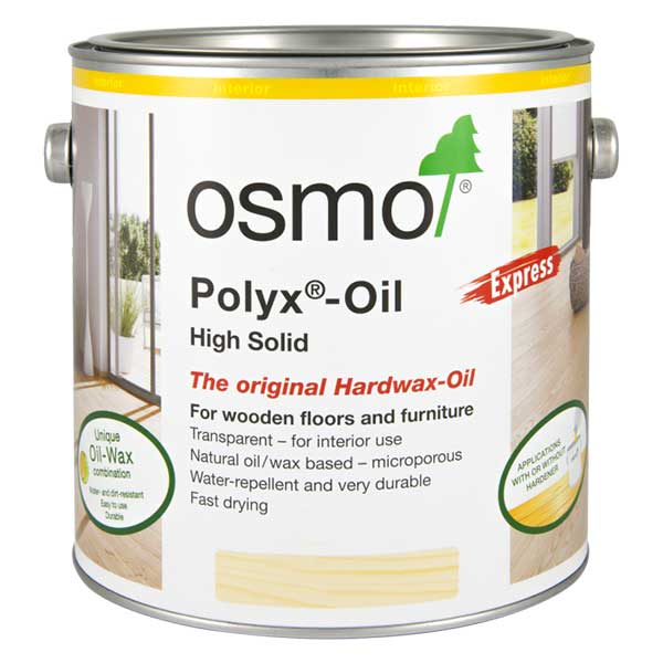 Osmo Polyx®-Oil Express is suitable for all wooden flooring, including solid wood and plankwood flooring, blockstrip, OSB and cork floors, as well as wooden furniture. When used in conjunction with Osmo Polyx Oil Express Hardener, it is also suitable for the clear treatment of extractive-rich hardwoods, such as Meranti, Wenge and Merbau. Highly resistant to common liquid spillages such as water, cola and wine.