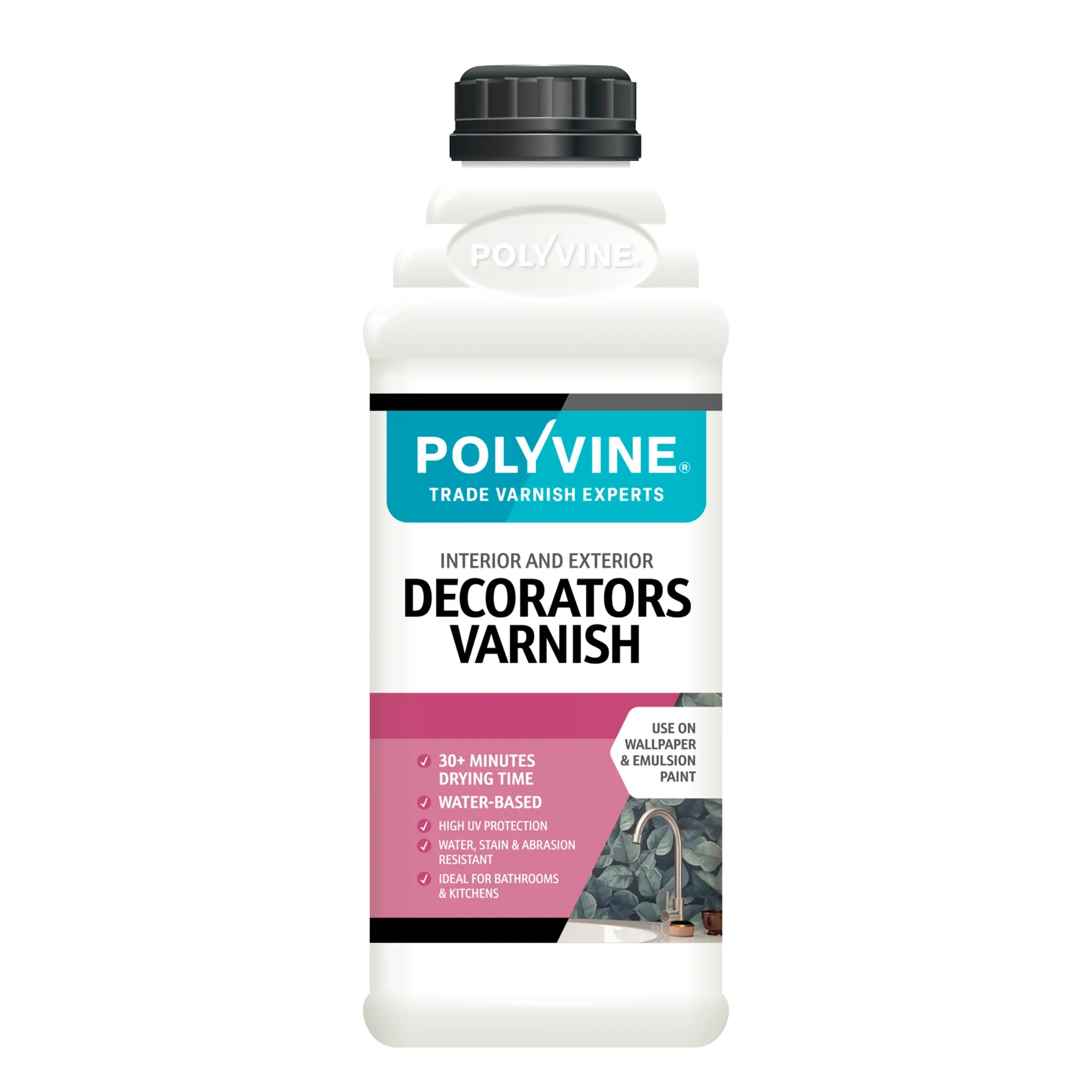 Polyvine Decorators Varnish is a highly durable finish that protects a wide range of surfaces against finger marks, stains, scuffing and colour fading. It is perfect for use on interior wood, fabric, paintwork, wallpaper, plaster, murals and mouldings.