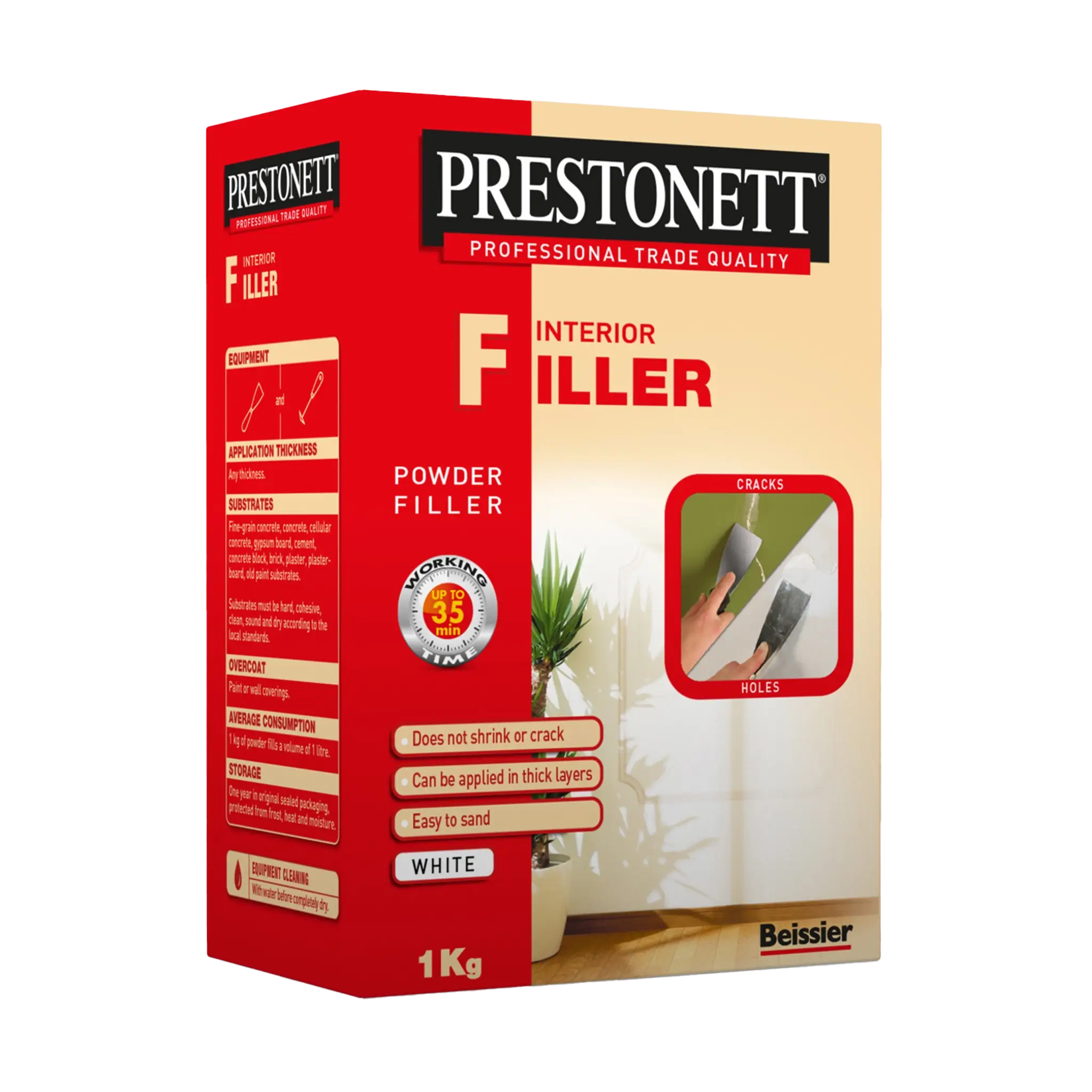 Prestonett Interior Filler is a powder filler that can be used to fill damage, cracks and holes to walls before being decorated. Suitable for fixing plaster mouldings, cornices and roses. Ideal for preparing indoor surfaces before being painted and can be sanded to a flat, smooth and blemish free finish.